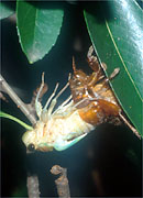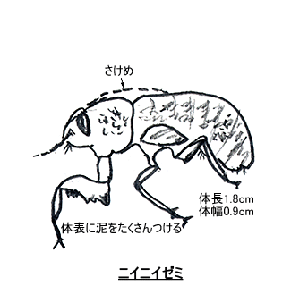 不完全変態とはいえ、幼虫が7年あまりの長い地中の暮らしから地上に出て羽化(うか)するときは、劇的な変化を遂げて成虫になります。それと、触角がとても短いです。