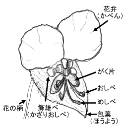 朝早くから咲き、正午ごろには閉じているごく短命の花。そのつくりは以下のようになっています。