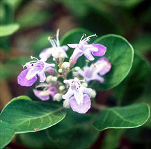合弁花、クマツヅラ科の落葉低木で、葉は対生につきます。花は淡紫色、口びる型、さきが大小5つに裂けています(写真334)