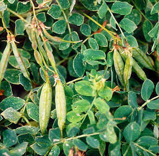 豆果(とうか:さやになった果実)はまるでサヤエンドウです(写真337)。
