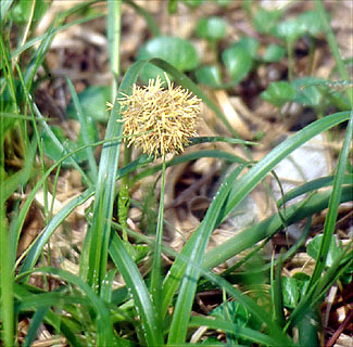 カヤツリグサ科の多年草で、雌雄は別の株になっています。太短いムギのような穂は雌株で、フデクサともいいます(写真344)。