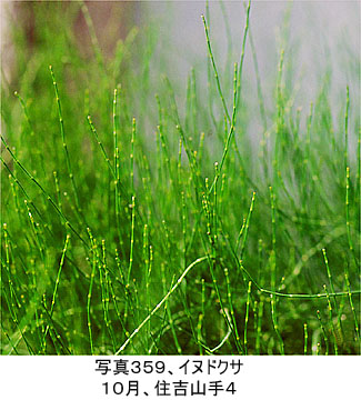 スギナやトクサのなかまのトクサ科のシダは2億年以上の太古の植物の生き残りです(写真359)。