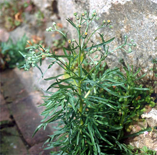 写真35のすぐ近くには,すでに茎を立ち上げ花をつけていました.石垣やコンクリートだらけの場所にもささやかな緑が息づいています.