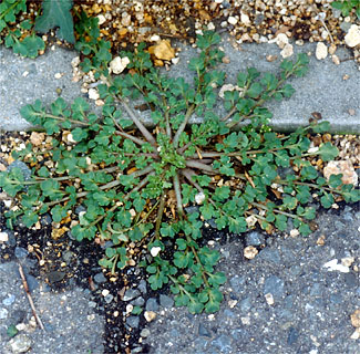 春,道ばたでよく見かけるこの草花(写真54)は,40年ほど前,東京で発見された地中海地方原産の帰化種です.朱赤色の花びらは4枚で,多くは一日花です.