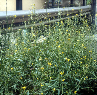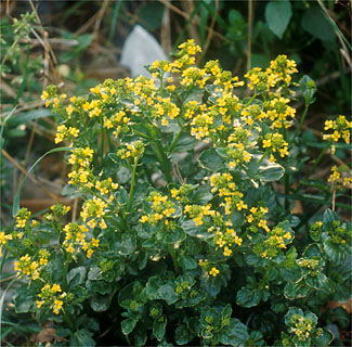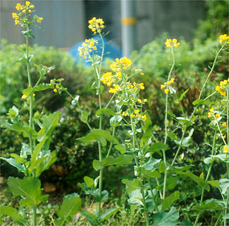| 郊外の河川敷などで大群落をつくるのはセイヨウカラシナです.葉のふちに注意しましょう. |