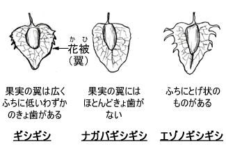 ※ギシギシのなかまの上の三つはよく似ているうえに,雑種のできることもあり,まぎらわしいですが,花の後,120度ずつ離れた3枚の翼(ひれのようなもの)のふちに注意して区別します. |
