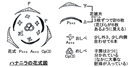 ※花のしくみを言葉で表すと長ったらしくなるので花式図にしてもよい。 |