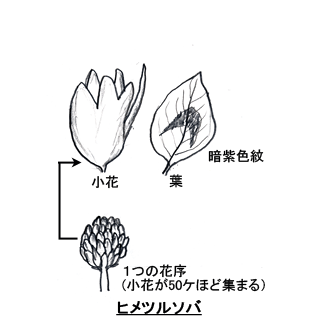 cover 地被植物)として移入されました。いまでは庭先、石垣などへと逃げ出して街のあちこちで野生化し、ほとんど年中花が見られます(写真129)。 まとまって咲いているところはなかなか見ごたえがあります。イヌタデなどと同じタデ科のなかまで、葉に暗い紫色をしたV字形の紋があります。