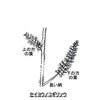住宅地の法面(のりめん)にセイタカアワダチソウなど、背の高い草に混じって生えていました(写真132)。葉は2〜3回、細く、深くさけています。日本に古くからあるノコギリソウは温帯〜亜寒帯に分布する北方系の植物で、神戸には生えません。