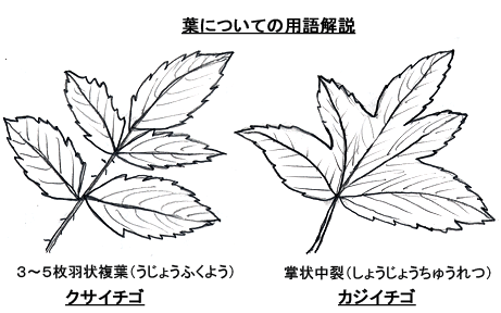 葉は3ないし5枚の複葉で白いはなびらのふちは少し縮んでいます。これらのようすから、バラ科の仲間との想像は困難ではありません。