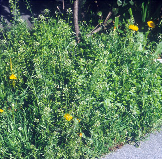 見られる草は、いままでに紹介してきたナズナ、スズメノカタビラ、セイヨウタンポポなどです。 |