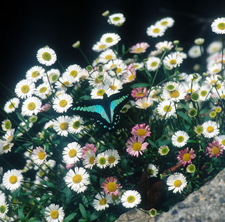 花のしくみから既に話したように、キク科のなかまです。花にはアオスジアゲハがきていました(写真130)。
