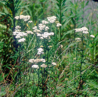 セイヨウノコギリソウはヨーロッパの原産で最近は道路の法面にも見かけます。この写真ではわかりにくいですがキク科のなかまです。