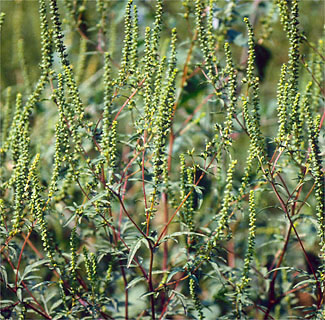 キク科の多くのなかまが虫媒花なのに、このブタクサは風媒花で、北米では花粉症をおこす植物とされます。似たものにやはり同じ外来種のオオブタクサ(葉がクワに似る)がありますが少数派です。
