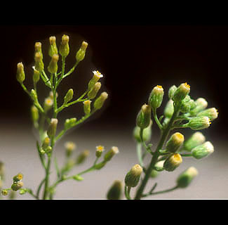 写真247、ヒメムカシモヨギ(左)とオオアレチノギク(右)