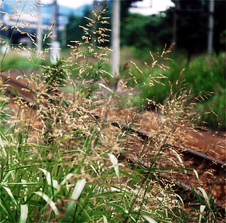 地下に強力な根茎を伸ばして根づく地中海沿岸地方からの帰化種で高さ1〜2mの大型の多年草です(写真273)。ニワホコリとは強弱があまりにも対照的なので紹介しました。セイバンモロコシは果樹園にとって強害草とされます。