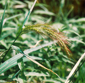 また、普通のシバは茎の先に短い1本の穂しか立てませんので、これまたたやすく区別できます。できれば穂についている一つ一つの小さな花をルーペで観察して比べてください。