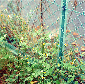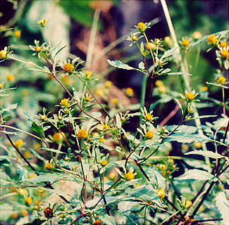頭花は黄色の筒状花とまわりが白の舌状花で、舌状花も黄色のコセンダングサの変種です(写真293)。