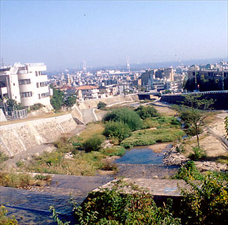 白鶴美術館近くから写した住吉川の風景です(写真310)。このすぐ上の河川敷のブッシュ(bush)で、エノキやクスノキの低木にまじるヨモギに巻きついていました。