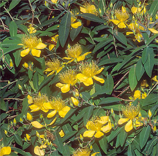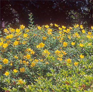 オトギリソウ科。キンシバイ(写真426)とよく似ているが、おしべがとても長い(写真427)。