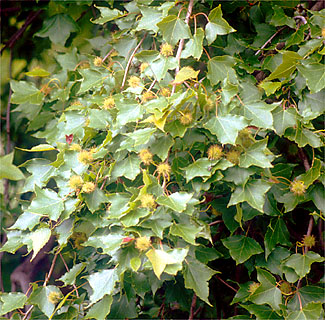 マンサク科。葉は3つに浅くさけています(写真428)。もし5〜7つに裂けていれば、米国原産のモミジバフウです。