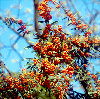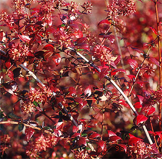 トウダイグサ科(写真432)。秋には紅葉し、白い実とのコントラスト(contrast)が美しい(写真433)。