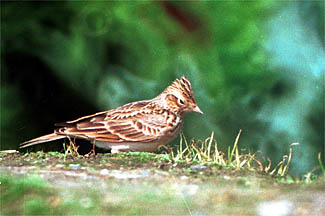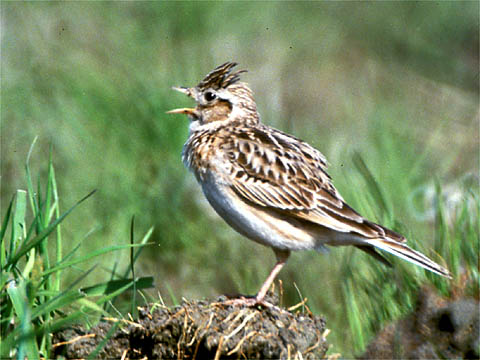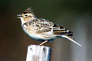 神戸では留鳥として一年中見られます.田園地帯に普通に見られ,「ピーチク,ピーチク」鳴きながら,空高く飛び上がります.