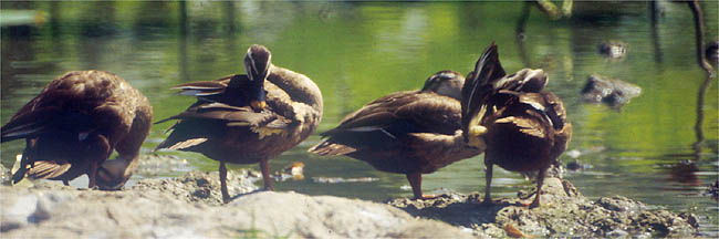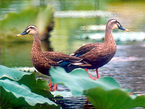 神戸では,カモ類は冬に見られるものがほとんどですが,カルガモは留鳥として一年中見ることができます.田んぼやため池,冬は海に浮かんでいることもあります.