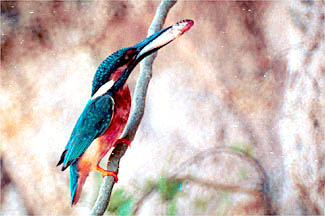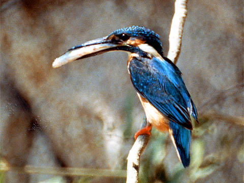 神戸では留鳥として一年中見られます.渓流のシンボルとして,神戸の各河川に出現します.急降下してダイブし,魚を捕らえます.巣は崖や土手の土に穴を掘ってつくります.