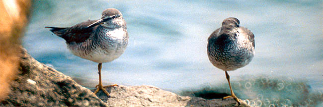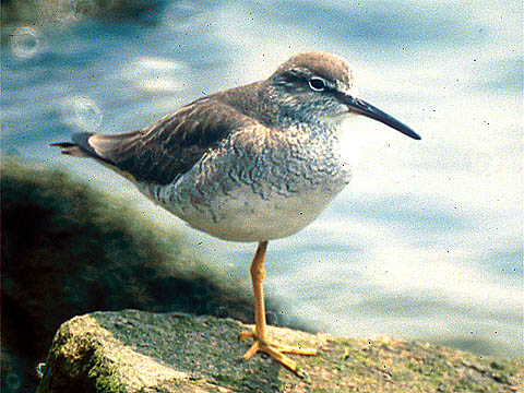 海岸で,片足で休息,1990.5.12,姫路市飾磨区(市川)