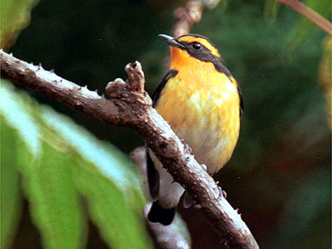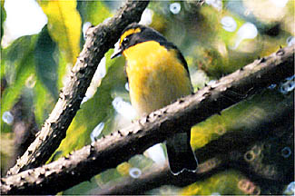 オスはのどから腹にかけてあざやかな黄色です.また目の上のまゆ状のスジも黄色をしています.ムギマキがよく似た色をしていますが,まゆ状のスジは白色です.メスは緑かっ色をしていて地味な感じです. |