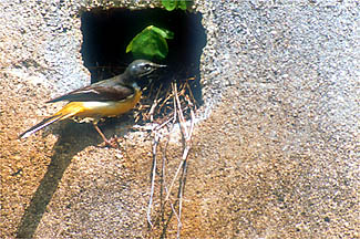 神戸では留鳥として一年中見ることができます.どちらかというと川の上流に現れることが多く,波状に飛んで,止まると長い尾を上下にふります,写真のようにコンクリートの穴に巣をつくったりします.