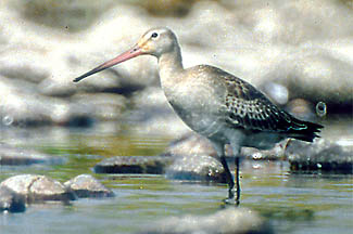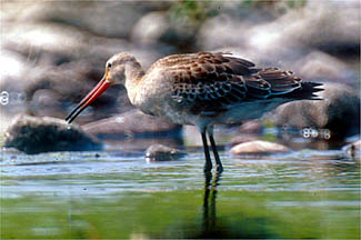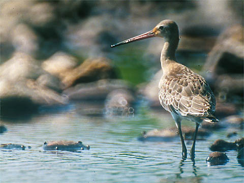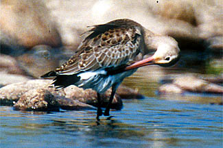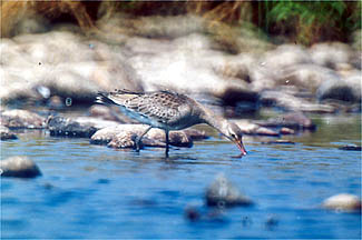 体が大きく,くちばしが長いシギです.尾の先が黒いのでこの名前がついていますが,飛ぶとさらにはっきりと分かります.