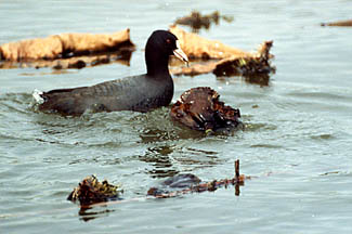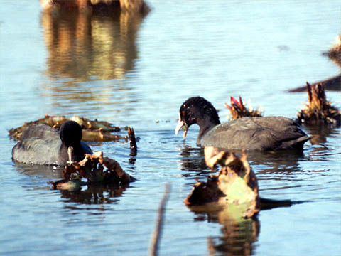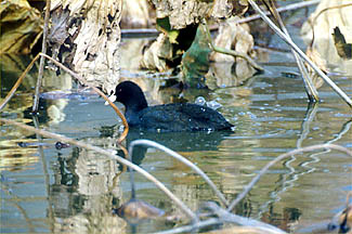 くちばしから額にかけて白いのが特徴で,またバンよりひとまわり大きく,区別がつきます.