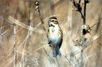 神戸では冬鳥として秋から翌年の春まで見られます.池のほとりや河原のヨシ原で生活しています.立った茎に止まってヨシの葉や茎をついばんでいることが多いです.