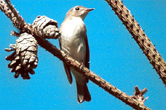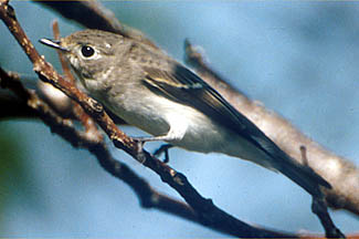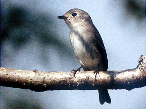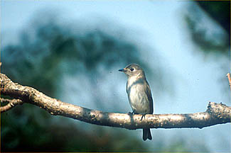 コサメビタキとよく似ていますが,脇の部分が濃い灰色ですので区別できます.若い鳥はエゾビタキのように脇にねずみ色の縦長の斑点が出ます.