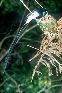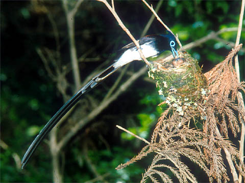 オスの尾が非常に長いのが特徴です.メスは長くはありません. |