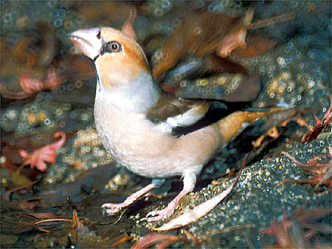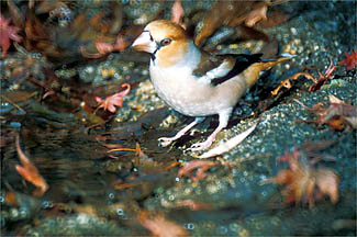 くちばしが体に比して結構大きく見えます.冬の間のくちばしは黄白色をしています.つばさは黒っぽく白いバンドがひとすじあります.
