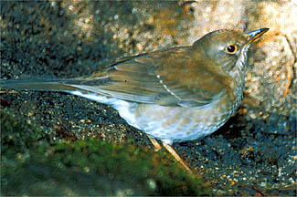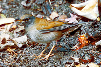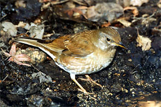 全体がかっ色で黒っぽく地味な感じのする鳥です.腹部は白いですが,横の方は淡いかっ色になります.