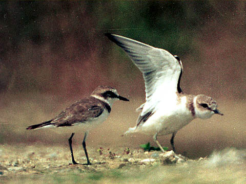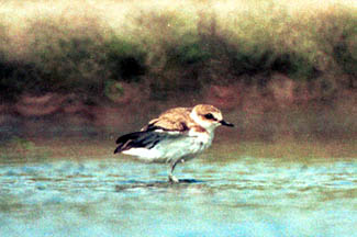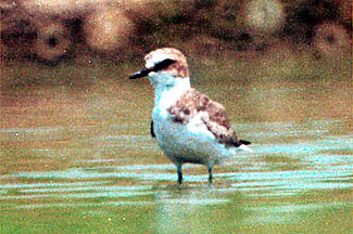 コチドリ,イカルチドリの中間くらいの大きさです.首のまわりの黒いリングが胸のところで切れるのが特徴で,これで,イカルチドリやコチドリと区別できますす.