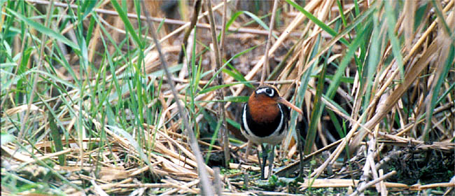 色彩はメスの方が派手でオスの方が地味です.これも繁殖のしかたと関係あるのかも知れません.独特のもようと色彩は他のシギにはありませんので,間違えることはないでしょう. |
