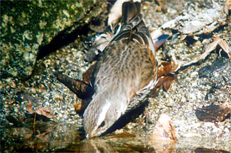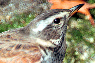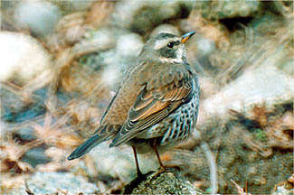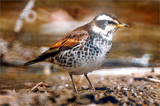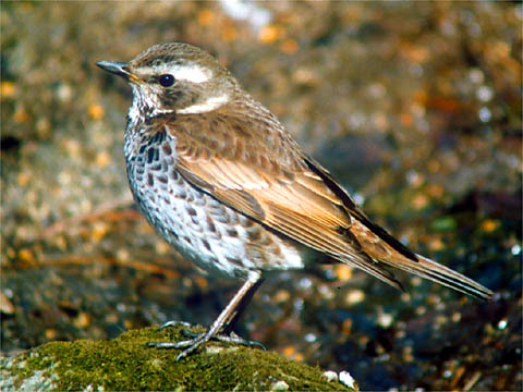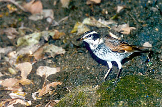はっきりとした,目の上のまゆ状の白いスジが特徴です.腹は白ですが横の方は黒い斑点が目立ちます. |
