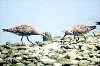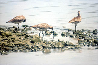 くちばしが下に大きくそっています.○○シャクシギという名がついているなかまは同じようにくちばしが下に曲がっていますが,北野(1999)によると,神戸で見られるのは,チュウシャクシギ以外にはまれにコシャクシギが見られる程度なので,名前を間違えることは少ないでしょう. |