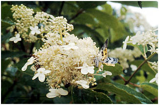 [ノリウツギと花に集まる昆虫たち、峯山、1987.7.18.]