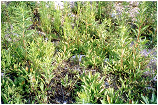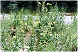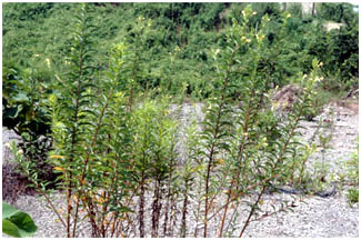 近年、分布に非常な広がりを見せている種類です。河原、開発地などかたまって生えます。 |