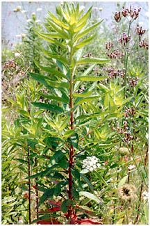 全体のすがたはすらりと細長く、草丈は1m以上にものびます。枝の上部で枝分かれすることが多いです。 |