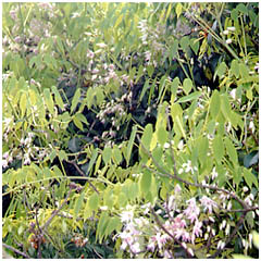 5枚のやや大きな小葉をつける。常緑で、冬もつやつやした葉をつける。