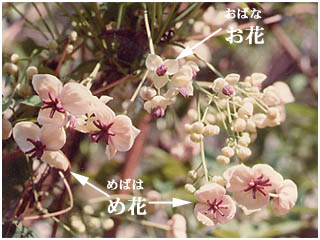 大きい花で、柄が長い。やや太く、数本のひも状のめしべがつく。