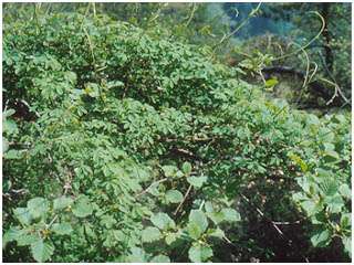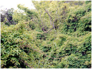 (2) 花の後、周りの草木をおおいつくす勢いでつるが伸びます。