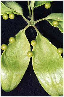 - 果皮の縁に4−8mmの球形の種子を3−5個つけます。